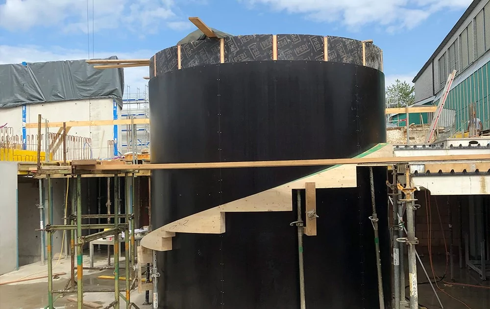 Am Unteren Graben 25 in St. Gallen wird über 20 Meter in die Tiefe gebaut. Unter einem in Betrieb stehenden Büro- und Gewerbehaus entsteht eine sechsgeschossige Tiefgarage mit über 500 Parkplätzen. Es wird das grösste Parkhaus der Innenstadt.