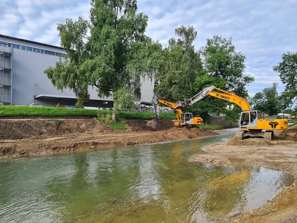 Auf dem Gelände eines ehemaligen Kieswerks der Walter Minder Söhne AG hat die Firma Toneatti AG, das Vergnügen, den Rückbau, den Aushub sowie die Hochbauarbeiten durchzuführen.