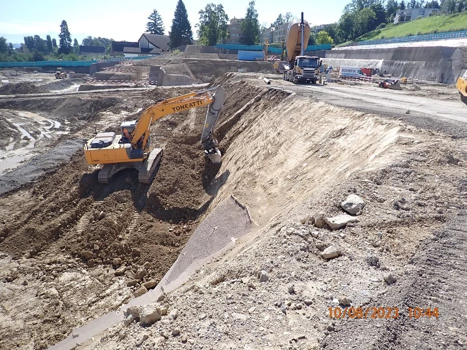 Besonders hervorzuheben ist der nachhaltige Ansatz, den Toneatti AG in diesem Projekt verfolgt. Effiziente Maschinen und eine durchdachte Logistik tragen dazu bei, Emissionen zu minimieren und den umliegenden Verkehr so wenig wie möglich zu beeinflussen. Dazu wurden unter anderem ausführliche Logistikkonzepte für den Bahn- und Strassenverkehr erstellt.