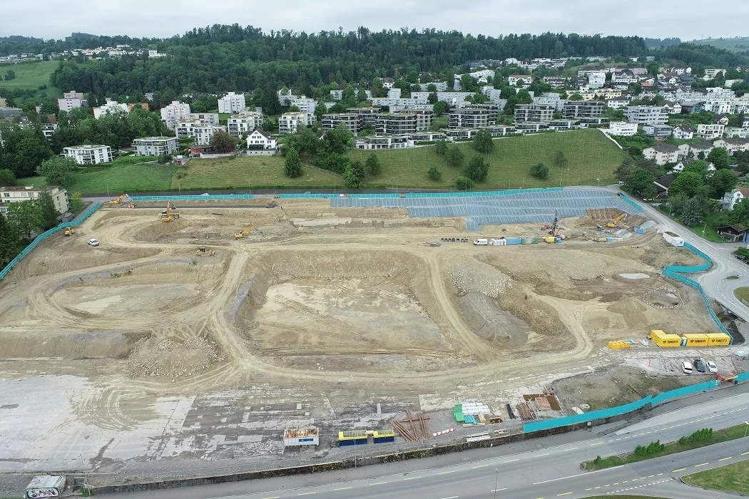 Nachdem im April die Abbrucharbeiten erfolgreich abgeschlossen wurden, laufen die Aushubarbeiten für den zukünftigen AuPark in Wädenswil auf Hochtouren. Inmitten des Areals sind bereits die Konturen der geplanten Bauwerke zu erkennen. Die Herausforderung liegt nicht nur in der Größe des Projekts, sondern auch in seiner Lage zwischen der Halbinsel Au und den umliegenden Wohngebieten, sowie der Nähe zur Seestrasse.