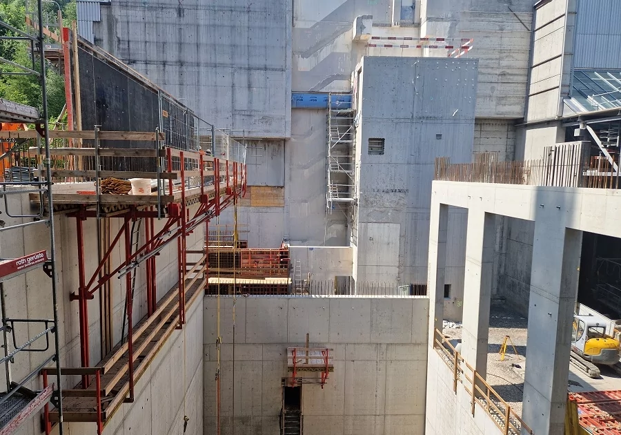 Am Unteren Graben 25 in St. Gallen wird über 20 Meter in die Tiefe gebaut. Unter einem in Betrieb stehenden Büro- und Gewerbehaus entsteht eine sechsgeschossige Tiefgarage mit über 500 Parkplätzen. Es wird das grösste Parkhaus der Innenstadt.