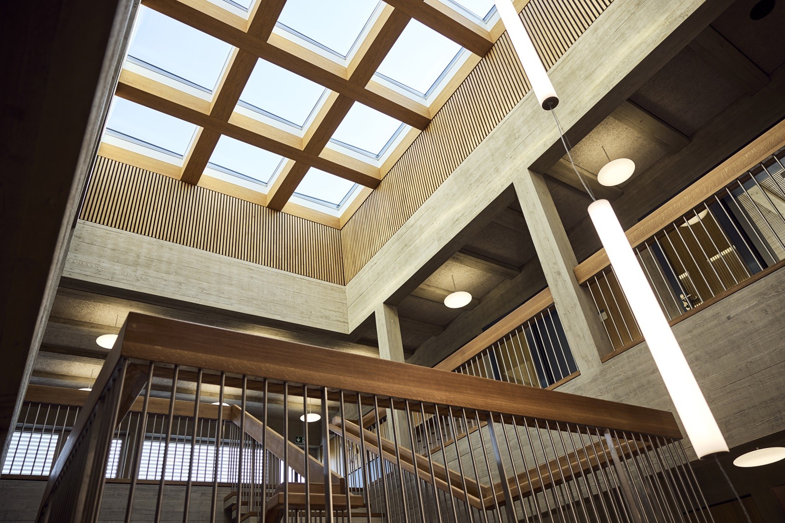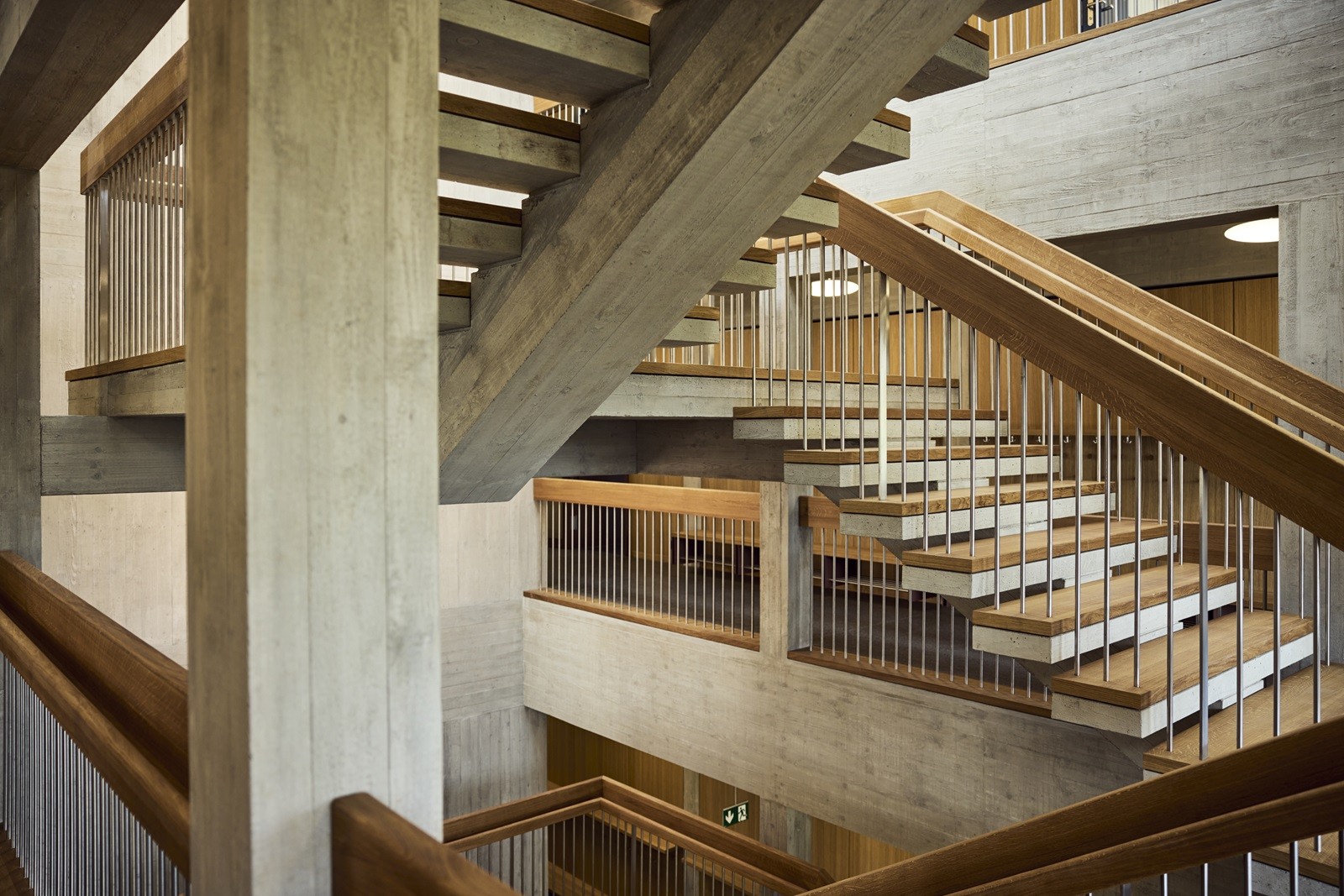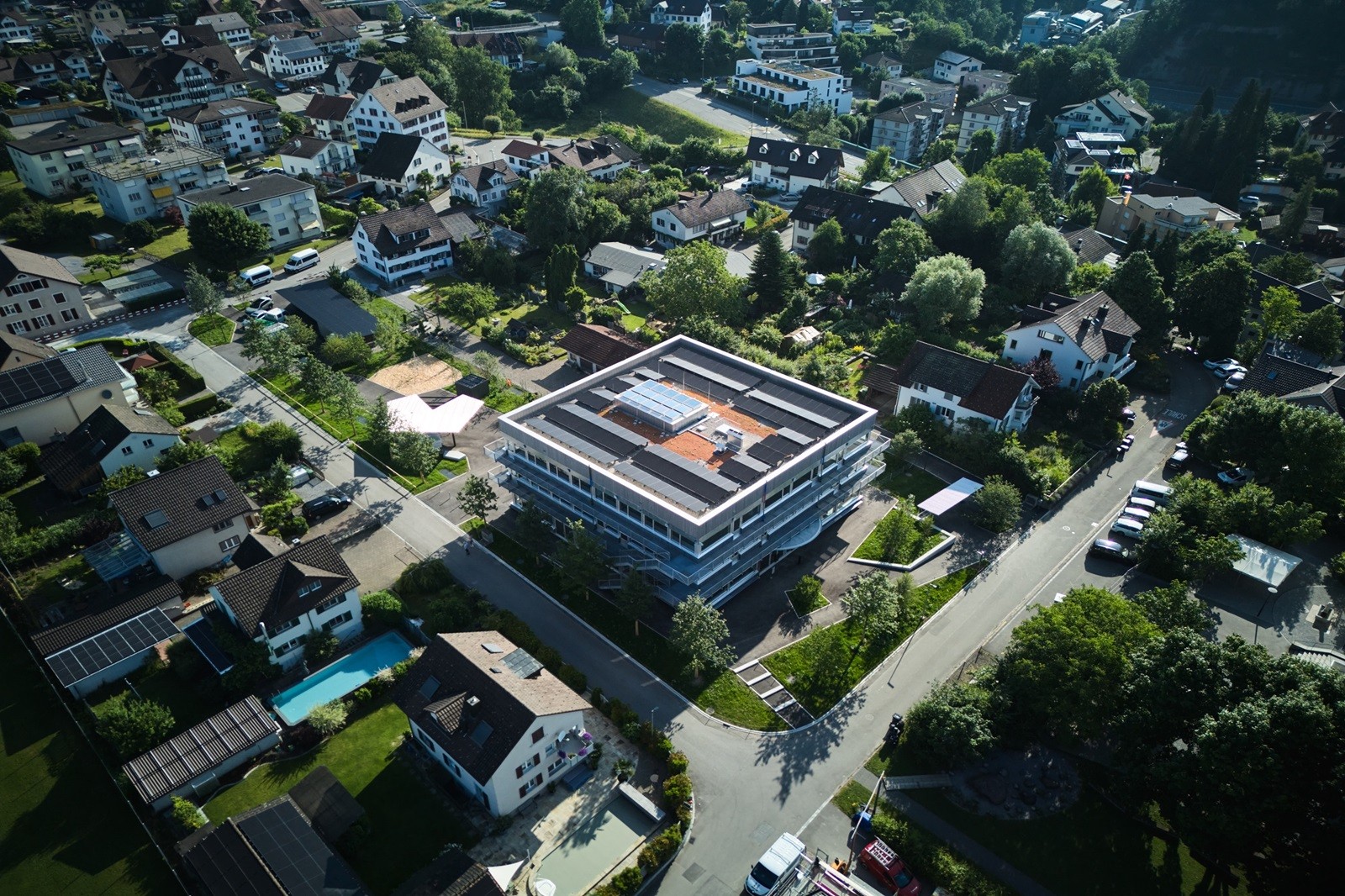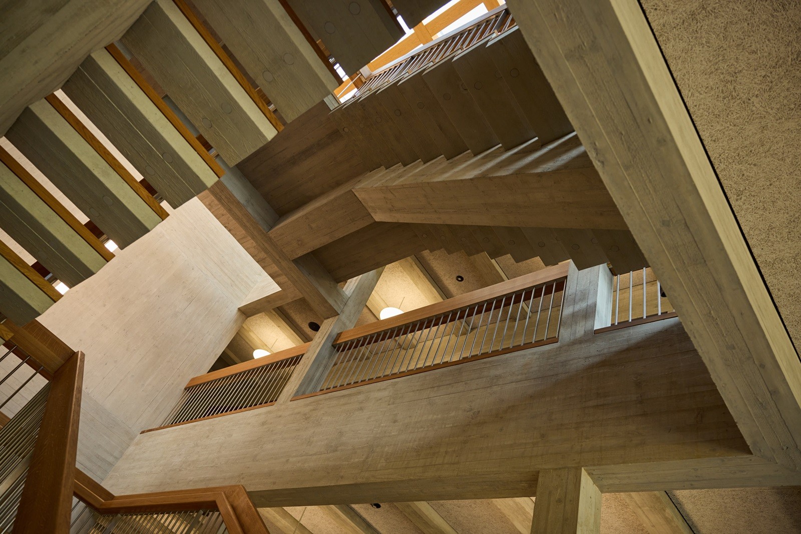 Die Erweiterung der Schulanlage in Tann/Dürnten umfasste den Neubau eines Schulgebäudes inklusive Tiefgarage, den Abbruch ausgewählter Bestandsgebäude sowie die Sanierung, den Um- und Anbau bestehender Die Bauausführung erfolgte etappenweise, um den laufenden Schulbetrieb und einen sicheren Ablauf auf dem Schulgelände zu gewährleisten. Zudem wurden runde Aussparungen in den Wänden realisiert und Ortbetontreppen mit monolithischen Trittflächen eingebaut.