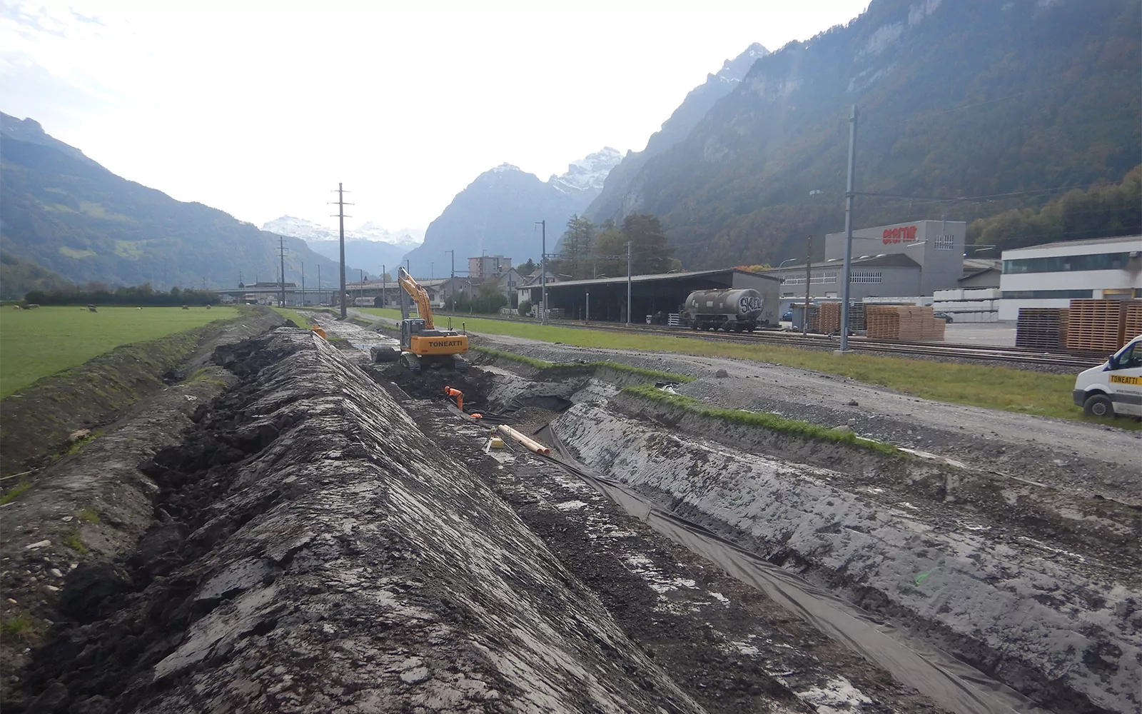Realisierung einer Fernwärmeleitung zwischen dem Bahnhof Niederurnen und der Stichstrasse Näfels/Mollis über eine Länge von ca. 2 km. Parallel zur Fernwärmeleitung werden weitere Werkleitungen (Wasserleitung, EW-Kabelrohrblock, Axpo-Kabelrohrblock) ausgeführt.