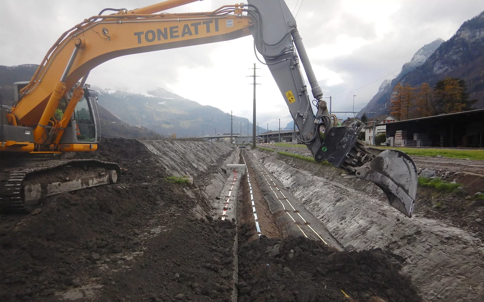Ober-/Unterboden 16‘000 m3, Aushub/Grabarbeiten 26‘000 m3, Grubenaushub 600 m3, Entsorgung 7‘500 m3, Grabenspriessung 10‘500 m2, Kabelschutzrohre DN 80-150 13‘500 m, Geotextilien 17‘000 m2, Rundsand 0/4 Umhüllung 2‘500 m3, Hüllbeton 500 m3, Spülbohrungen bis DN 450 340m / 9 Stk. Spundwände 1‘150 m2, Spriessungen 10 to., Konstruktionsbeton WD-Beton 85 m3, Wasserhaltung/Pumpenstunden 16‘000 h
