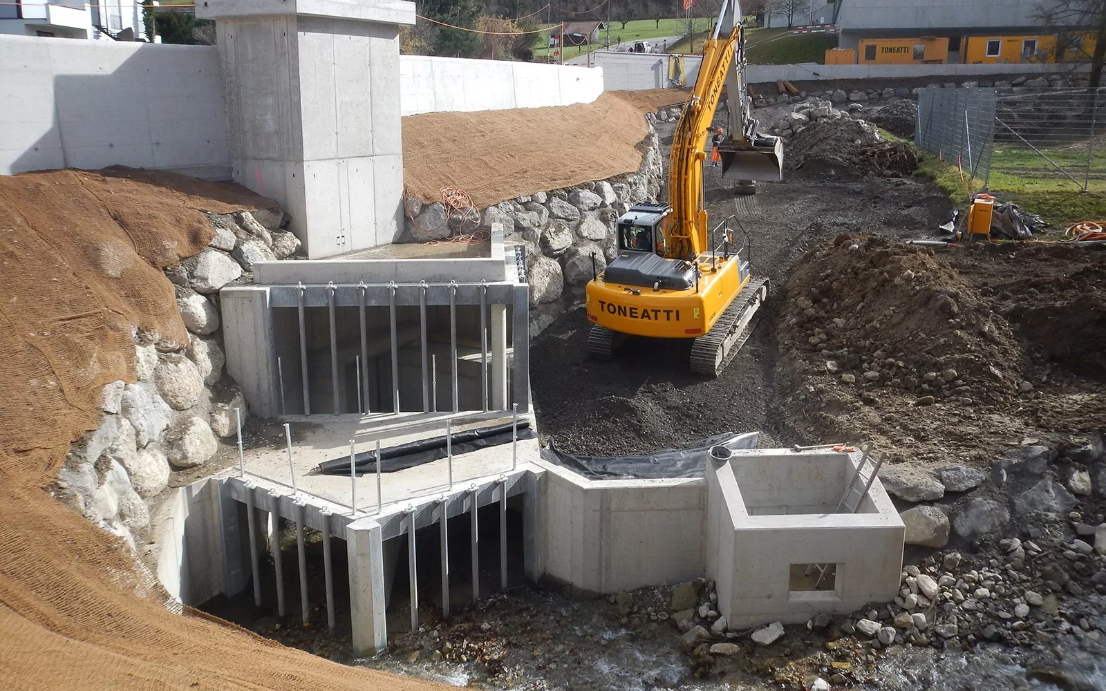Diverse Abbrüche, Erdarbeiten, Werkleitungen, Kanalisation und Entwässerung, Betonarbeiten, Blocksteinmauern, Fundationen, Belagsarbeiten, Dammschüttungen, Gerinneausbau