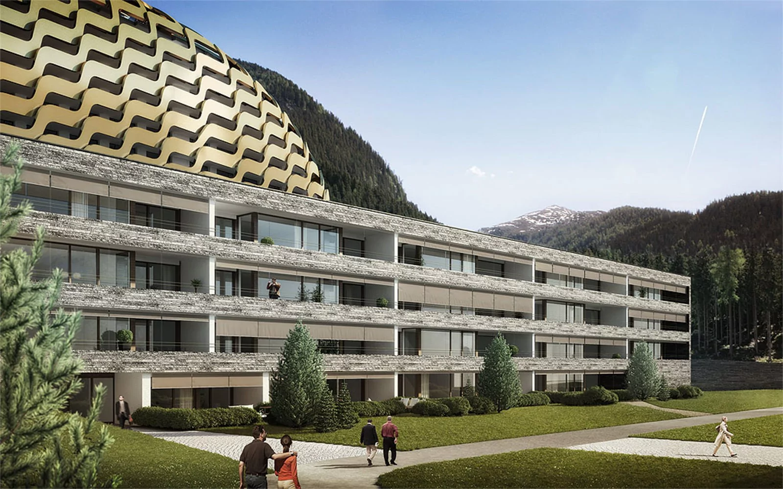 Im Gebiet Stilli mit schönstem Blick auf Davos steht das ovale 5-Sterne Luxushotel mit 216 Zimmern und Suiten. Der Spatenstich für das Flaggschiff der Davoser Hotellerie erfolgte im April 2011.