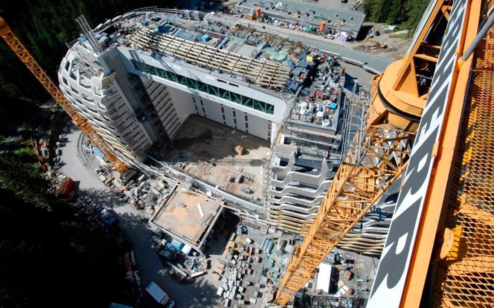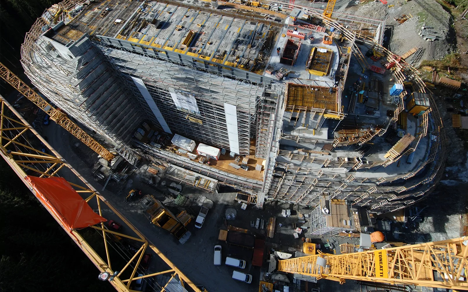 SIA 140‘000 m3 (90‘000 m3 Aushubarbeiten, 98‘000 m2 Schalung, 34‘000 m3 Beton, 5‘300 to. Bewehrung)