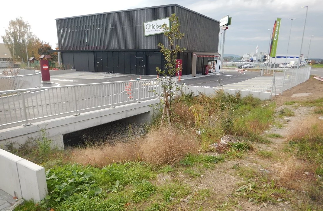 „Neubau Chickeria Hinwil“ als 2-stöckigen Minergie-Neubau mit einer Standalone Chickeria mit Sichtbetontreppenhaus. BKP 211 Baumeisterarbeiten: Werkleitungen, Wasserhaltung, Pfähle, Landschaftsbau, Fundationsschichten, Pflästerungen, Belagsarbeiten, Kanalisationen und Ortsbetonbau