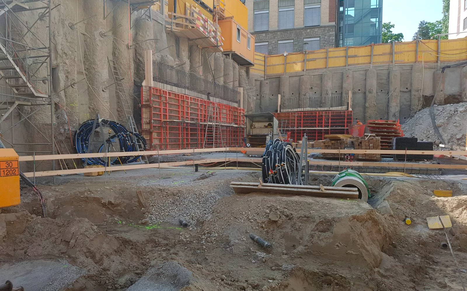 Die Migros Genossenschaft Zürich erweitert die bestehende MM-Filiale am Kreuzplatz in Zürich. Neben der Liegenschaft Kreuzplatz 20 werden zusätzlich die Liegenschaften Kreuzplatz Nr. 16 sowie Ottenweg 33, 35 und 35a in die Neubebauung miteinbezogen. Die Ausschreibung beinhaltet den Abbruch der bestehenden Gebäude unter Betrieb der angrenzenden Gewerbe- und Wohnbauten, das Erstellen der Baugrube mit einer Aushubtiefe von ca. 11 m, Baugrubensicherung bestehend aus einer aufgelösten Bohrpfahlwand mit Spritzbeton-Ausfachung, Ankerlagen und Unterfangung der benachbarten Gebäude und der Altlastensanierung. Der Riesbach-Tunnel der SBB verläuft ca. 12 m neben der Baugrube.