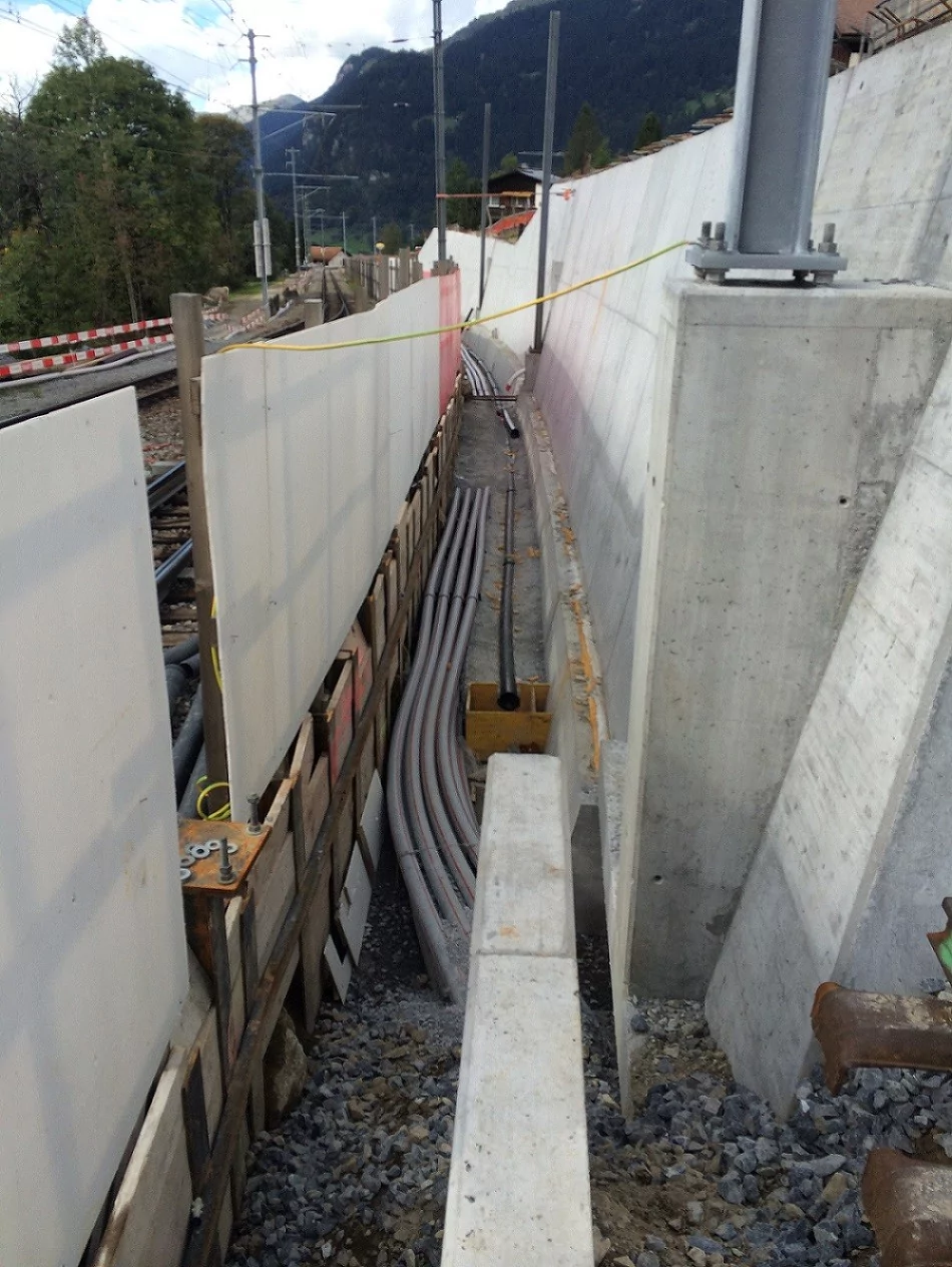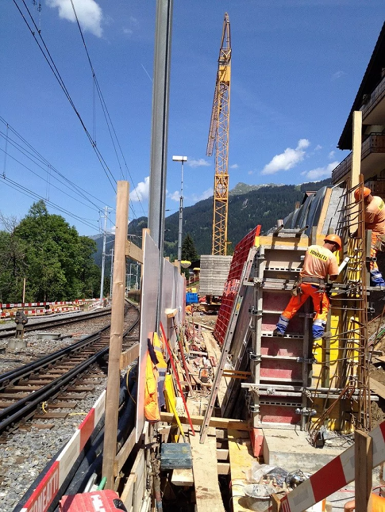Doppelspurausbau RhB auf der Strecke Küblis-Klosters. Trassebau mit Kunstbauten, Arbeiten an der bestehende Bahnstrecke unter dauerndem Bahnverkehr in Tag und Nachtschichten, Logistisch sehr komplexes Bauwerk. Werkleitungsbau und Entwässerungen in den Gleisanlagen, Stahlbetonarbeiten.