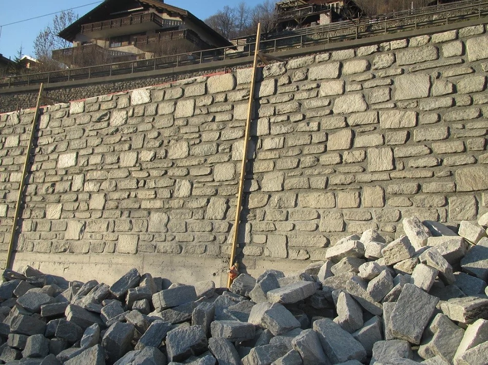 - Stützmauer in Stahlbeton mit Natursteinmauerwerk