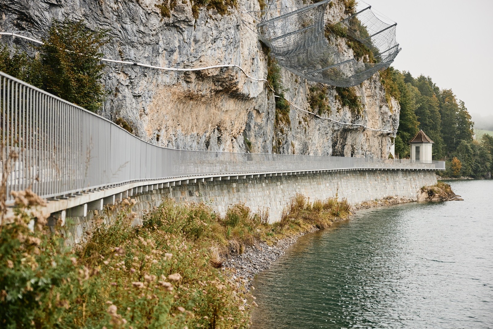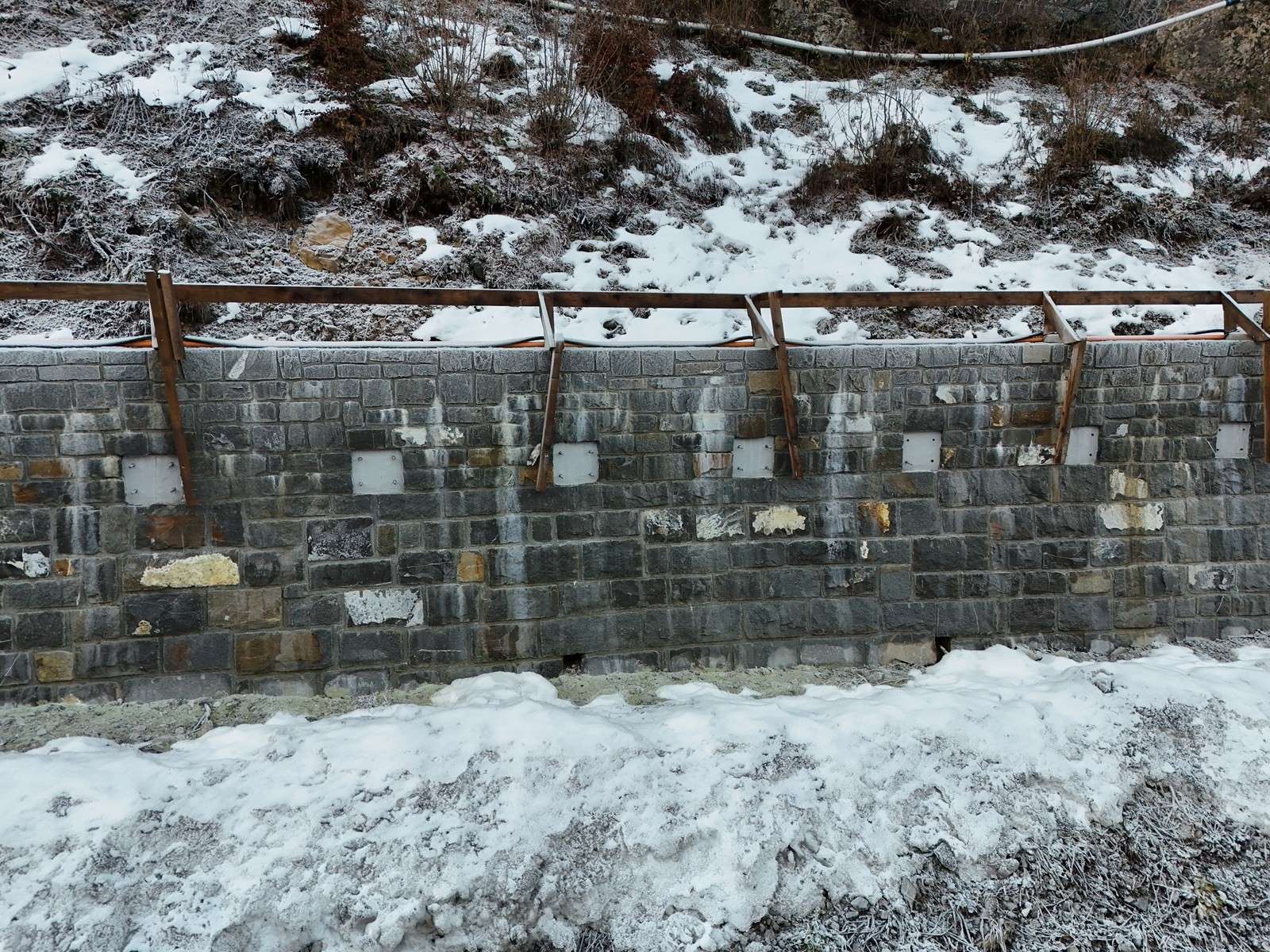 Komplettsanierung der bestehenden Stützmauer entlang des Klöntalersees für die Gewährleistung des Strassen- und Freizeitverkehr. Aufgrund des absturzgefährdeten seeseitigen Strassenteils wurde die Stützmauer umfassend saniert und um eine Brüstung nach oben erweitert.
