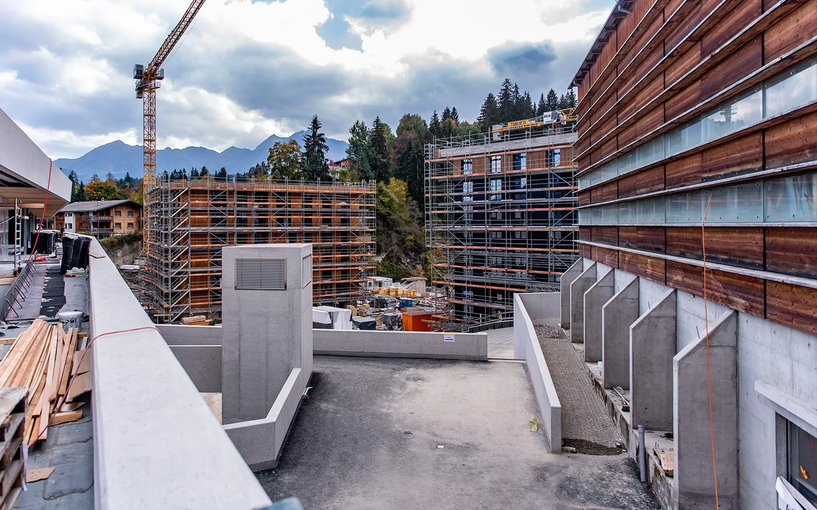 - Bauausführung im steilen Gelände, teilweise Betonarbeiten einhäuptig an Baugrubensicherungen (Verankerungen- und Nagelwände)